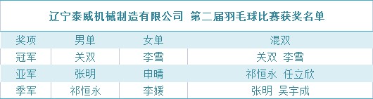 為了豐富員工的文體生活,培養(yǎng)員工的團(tuán)隊(duì)精神,增強(qiáng)員工的凝聚力,促進(jìn)員工之間的友誼,營造一個(gè)自信、陽光、充滿朝氣的企業(yè)氛圍,在鐵嶺市開發(fā)區(qū)總工會(huì)的支持下,遼寧泰威機(jī)械制造有限公司于2022年4月24日在開發(fā)區(qū)工人文化宮開展了第二屆羽毛球比賽,本次比賽以“文明、友誼、拼搏”為宗旨,秉承著勇攀高峰的精神和參與第一、友誼第一的比賽風(fēng)尚,充分展示著拼搏進(jìn)取的精神風(fēng)貌。
